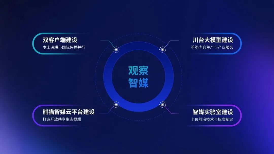 基于此,四川观察智媒科技有限公司以主流舆论语料库建设为基础,研发具有四川地域特色与川台基因的智能大模型。在内容生产端,聚焦智能写作、智能剪辑、智能审核等核心场景,实现内容生产从人工主导向人机协同的转型。在产业服务端,拓展政务舆情监测、政策智能解读、企业品牌传播等定制化服务,打造“媒体+AI+产业”的生态产品。
