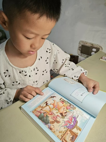 培养孩子的阅读习惯,首先我们家长要以身作则,同孩子一起努力,当孩子把阅读当成一种习惯后,就会把阅读变为“悦”读。首先,我们为孩子置办了书橱,然后给孩子选择适合他每个年龄段必读和感兴趣的书籍,到目前为止,家里的绘本、故事书、文学作品等已有200余册。孩子床头橱上一直会有几本绘本,并且是不停变换的。他每天晚上洗漱后,都会坐在床上,顺手拿起一本自己喜欢的书阅读,有的时候会忘记了睡觉的时间,那肯定是进入到了故事的角色中入了迷吧。兴趣是孩子最好的老师。家长陪伴孩子一起阅读,不仅能增进亲子关系的互动,还能让孩子阅读兴趣越来越浓厚。记得最开始,我们是给孩子读绘本进行阅读启蒙,那是我们和孩子共处的幸福时光。后来,随着孩子识字量的增加,进小学后的他逐渐可以自主阅读。