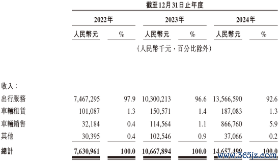 曹操出行的收入主要来自以网约车形式提供的出行服务,其他还包括来自车辆租赁、车辆销售等产生的收入。