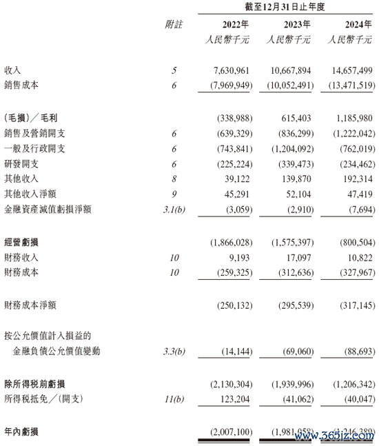财务数据显示,在过去的2022年、2023年和2024年,曹操出行的营业收入分别为人民币76.31亿、106.68亿和146.57亿元,相应的净亏损分别为人民币20.07亿、19.81亿和12.46亿元,,相应的经调整净亏损分别为人民币16.51亿、9.66亿和7.24亿元。